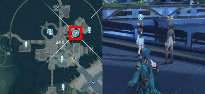폰타인성으로 이동하여 퀘스트 위치 근처로 가면 서브 퀘스트 느낌표가 표시됩니다.